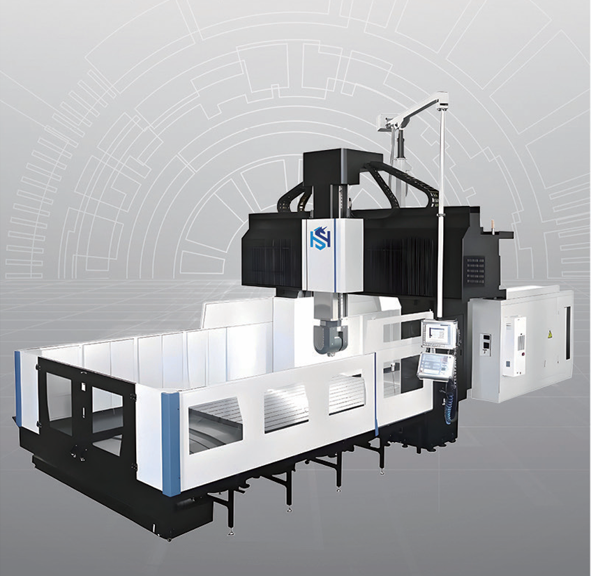 HS2518/3020/4025/4060/4080数控龙门镗铣床CNC Gantry Boring And Milling Machine产品特性·工作台在床身上移动(X轴),主轴箱在滑鞍上移动(Z轴),滑鞍连同主轴箱在横梁上移动(Y轴)的设计结构。·采用一体成型的树脂砂(密烘)铸件,结构合理,组织稳定,保证了机床的高刚性,高几何形位精度。确保机床能精密稳定的长久运行。满足多工艺加工的需要,提高生产效率,适应民用航空、汽车、能源、制造、模具行业的零部件加工。