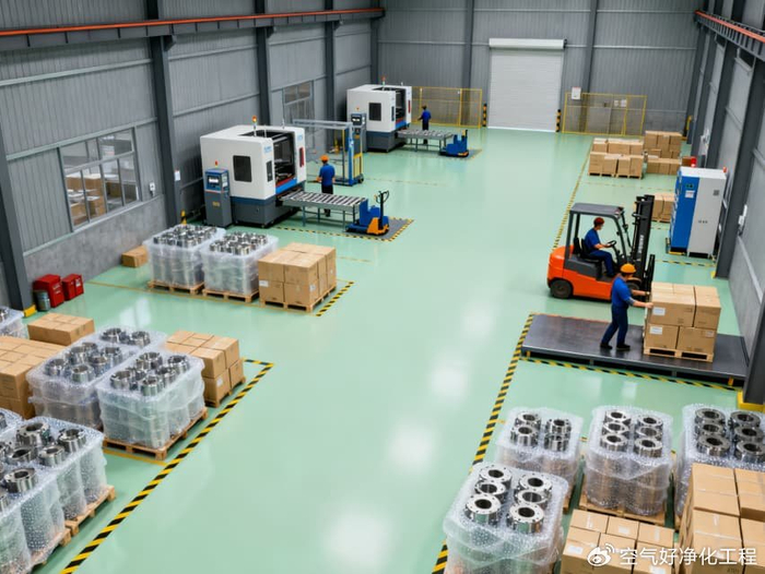 本精密CNC加工厂房涵盖8个核心功能车间,整体风格沉稳专业,统一采用浅绿色耐磨防滑地坪与灰色工业级耐磨墙面,精准适配精密零件铣削、车削、钻孔等CNC加工全流程需求。浅绿色地面选用高硬度环氧材质,抗压耐颗粒机磨且具备一定减震性,可减少设备运行震动对加工精度的影响,同时便于清理金属碎屑与切削液残留;灰色墙面采用防刮耐磨涂层,耐油污易擦拭,搭配工业风照明系统,营造清晰且抗视觉疲劳的操作环境。