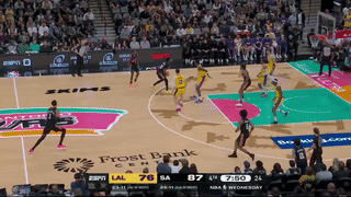 易边再战,福克斯连得6分带队扩大领先, 东契奇两罚全中以及轰进三分,范德比尔特连得4分帮助湖人追到2分,随后马刺8-3颗粒机扩大优势,艾顿中投命中,卡斯尔对抗得分,凯尔登抛投以及顶着防守轰进压哨三分,此时马刺领先到12分;海斯抛投得分,凯尔登造犯规罚球得分,东契奇打板得分,科内特空切抛投,马刺一直占上风,尚帕尼补扣,三节战颗粒机罢,马刺79-68领先湖人11分。