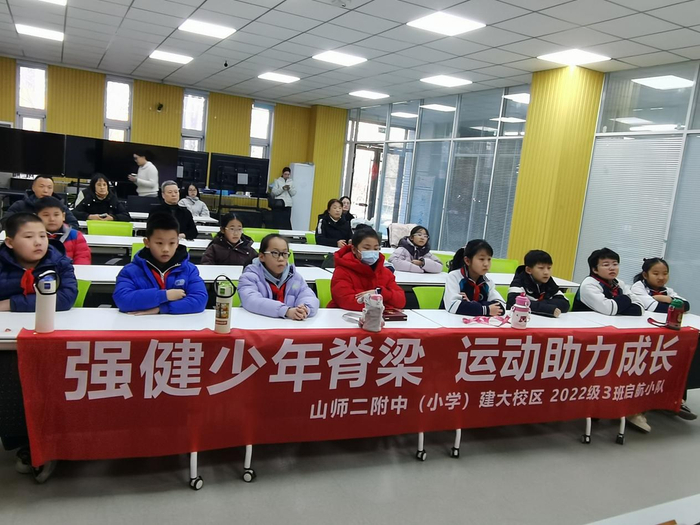近日,山东师大二附中颗粒机四(三)中队启航小队与山东体育学院携手,开展了一场别开生面的“强健少年脊梁,运动助力成长”主题健康促进活动。这场将专业筛查、科学讲座、实验室参观与特色运动相结合的活动,为孩子们带来了一堂生动的脊柱健康颗粒机实践课。