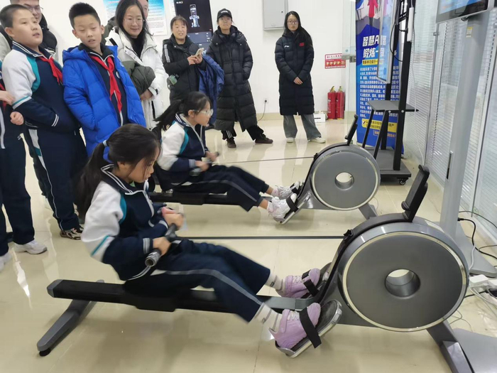 活动的第三站是参观山东体育学颗粒机院的运动健康促进实验室。这一环节特别受孩子们欢迎。实验室里陈列着各种先进的运动科研设备,科研人员向孩子们展示了运动生理监测、体能评估等技术。