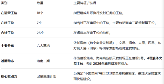 截至2025年7月的数据显示,全国各大发射场已投入运营的商业航天发射工位为18个,另有7个正在建设。